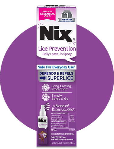 After the lice are gone, here’s a few tips to keep lice away: use the Nix® Lice Prevention Spray, keep your child’s hair up and tight, and make sure to avoid sharing hats, combs and towels.
